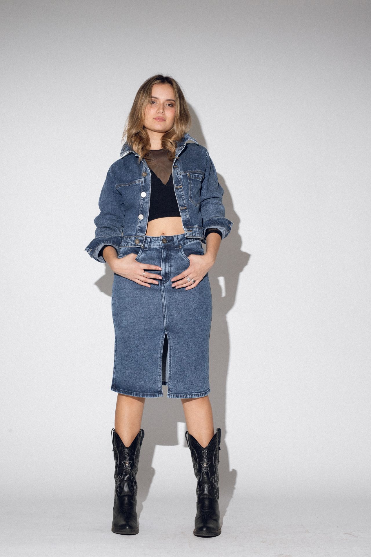 Cropped jacket denim blue wash