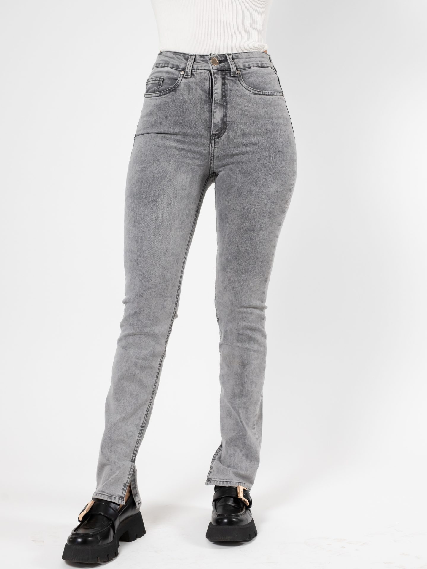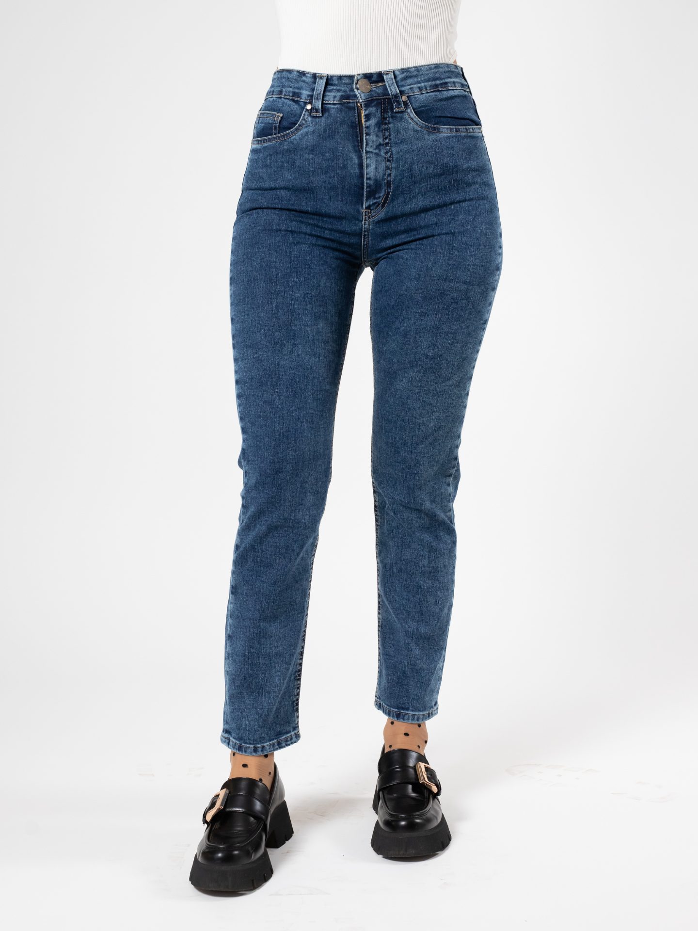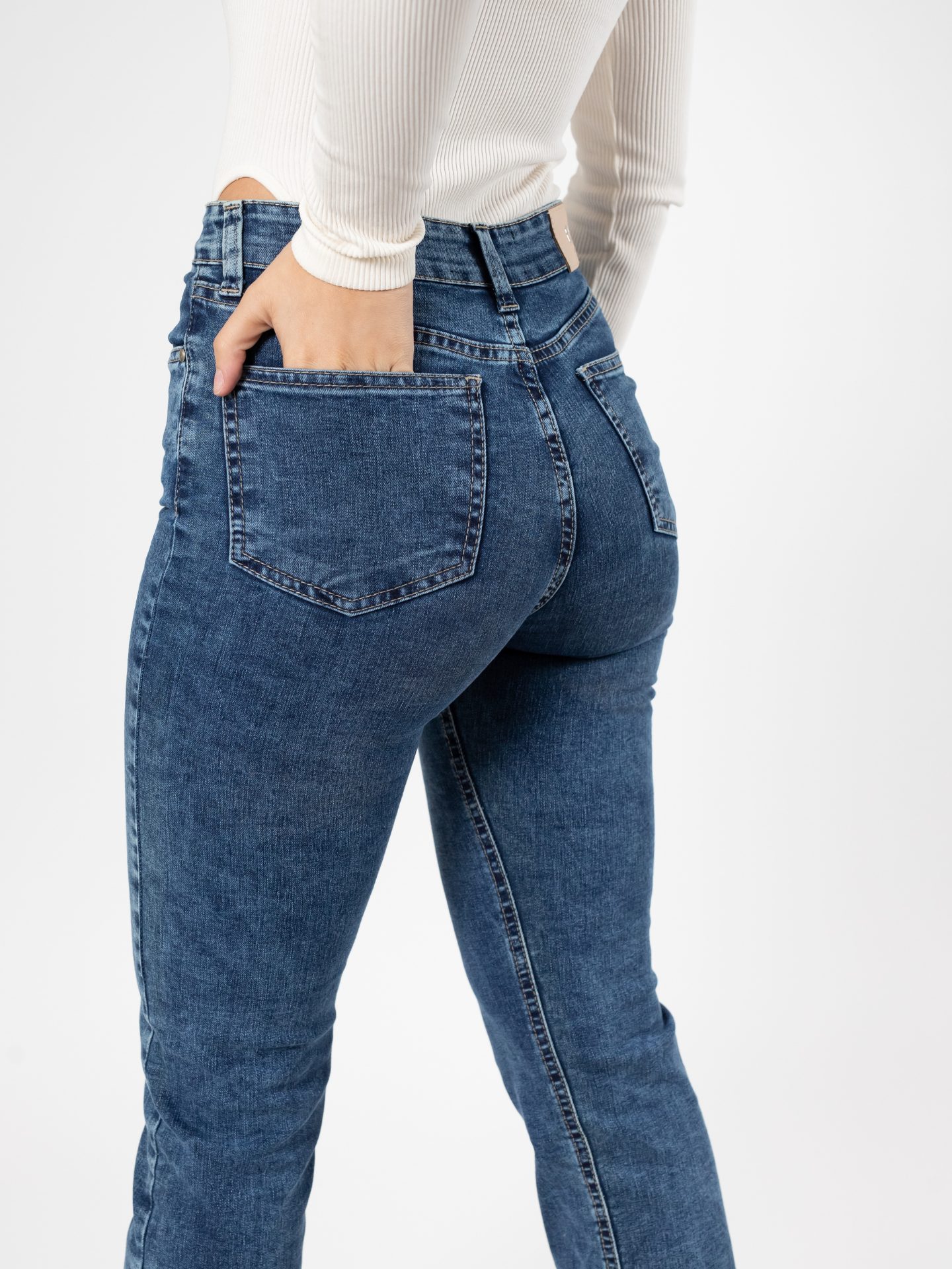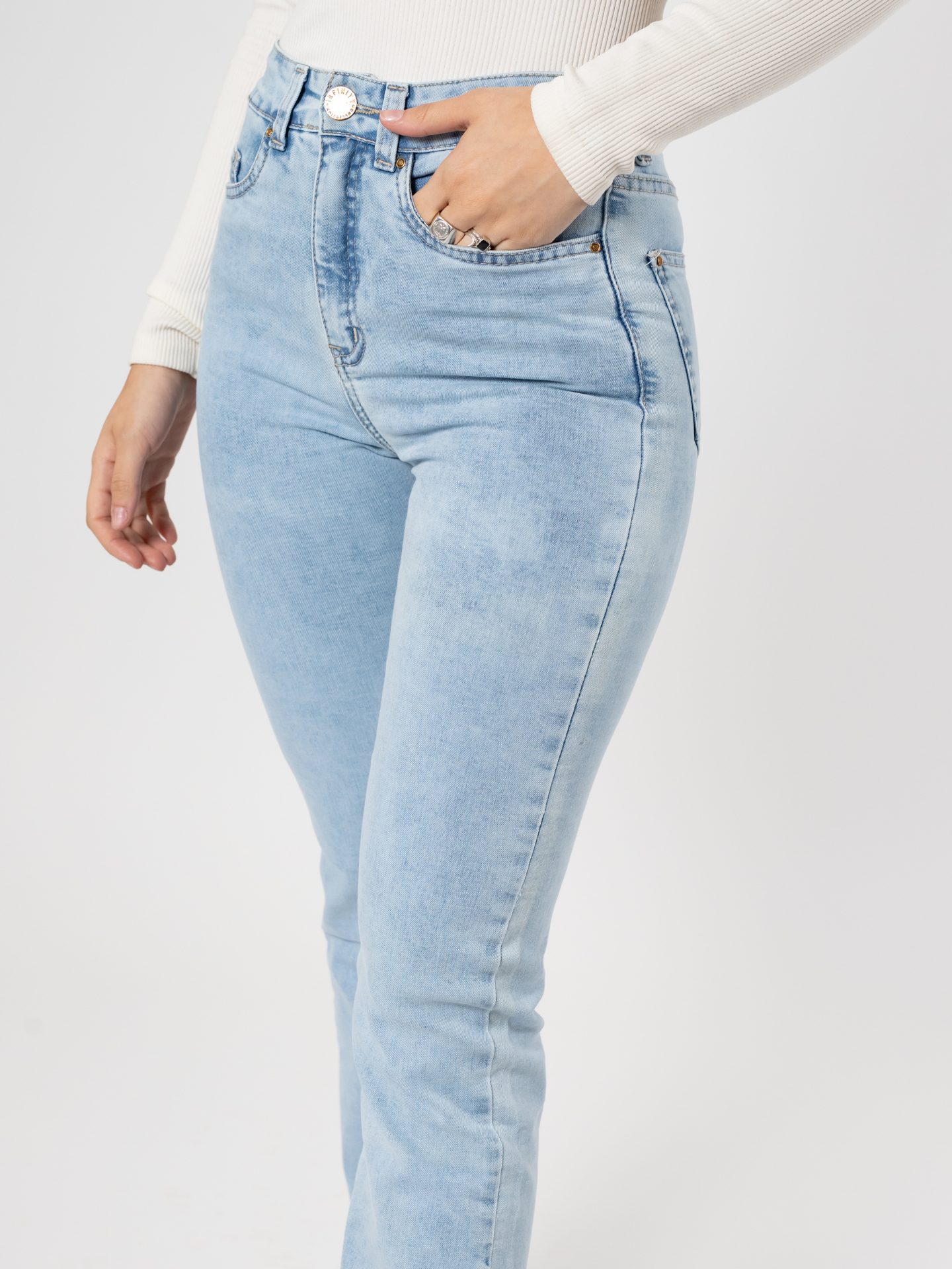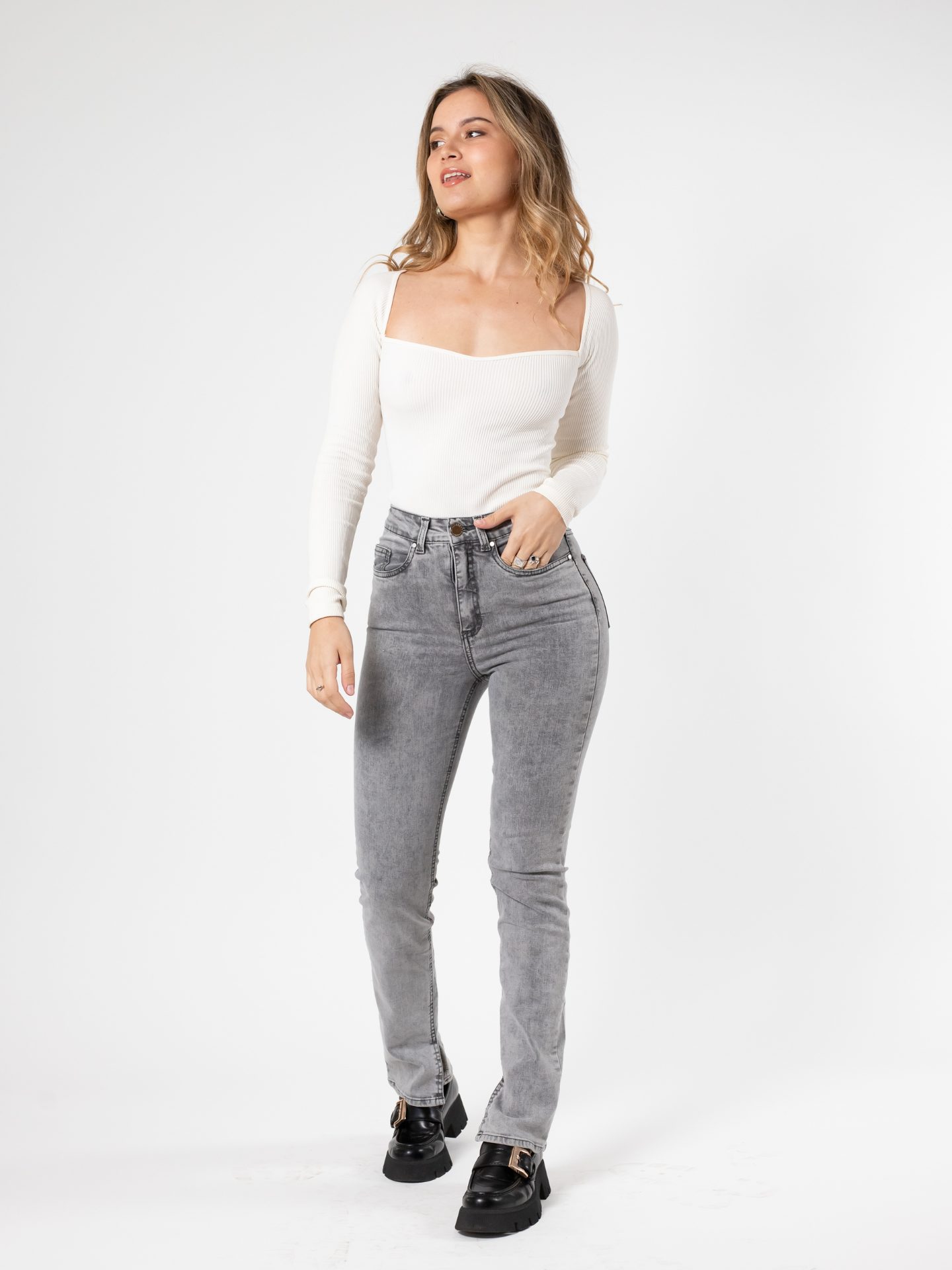 JEANS STRAIGHT TIRO ALTO MEZCLILLA MUY ELASTICADA DEFINE TU FIGURA. PIERNA RECTA DESDE LA RODILLA AL TOBILLO.